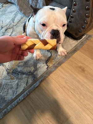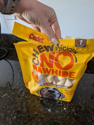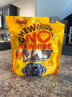 [This review was collected as part of a promotion.] I was surprised my dog liked these since he’s usually not into chicken-flavored treats, but he really enjoys munching on the Cadet Chewalicious Chewy ’N Crunchy Braids! The medium size is perfect — not too big, not too small — and lasts him a decent amount of time, especially with the chewy and crunchy combo that keeps him busy. I also appreciate that they’re rawhide-free and made with natural ingredients — no artificial flavors or preservatives, which gives me peace of mind. Real chicken is one of the main ingredients, and they’re easier to digest than traditional rawhide treats. Only downside: the resealable bag is kind of useless. It never fully closes, so I end up transferring the treats to another container to keep them fresh. Still, great quality for the price, and my dog is happy — which makes me happy!