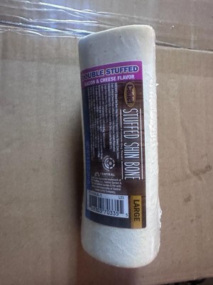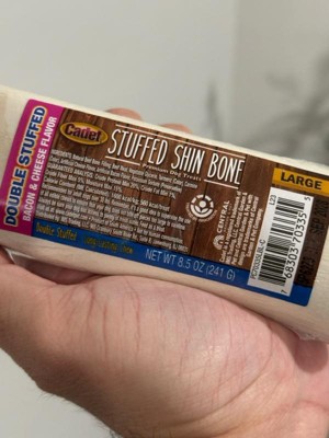 [This review was collected as part of a promotion.] Cadet Double Stuffed Shin Bones for Dogs Bacon and Cheese Flavor is a hit in our home! It has been keeping our dog very busy. It is a great size and will take her a while to get all the filling out. Also, the bone can be refilled with stuffing, for even more fun. It is helpful for her dental health and keeping her plaque in check. I will definitely recommend this to my fellow dog owners.