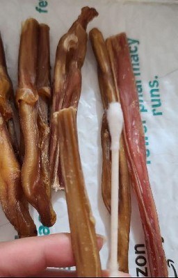 I usually buy the 5ct smaller bag of these but decided to try the 6.5 oz "value size" to see if it was better. While it maybe cheaper per oz, the sizes in the larger bag wildly vary with some being huge and some as thin as pencil. My "big" bag only had 10 sticks in it. Other than the wildly different range of sizes, my dog does like these.