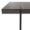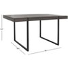 Embrace the effortless style and charm of our Cael dining table. Defined by clean and crisp lines, our dining table features a thick rectangular tabletop. Its silver metallic base meets the top to serve as a unique and striking design feature. Our dining table warms up with the rich grains of wood, finished off in a graceful charcoal and black color. Perfectly harmonizing with a silver frame, the stylish and inviting dining table can comfortably seat 4-6 people.