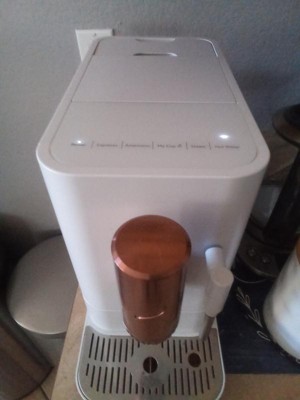[This review was collected as part of a promotion.] One star off for poor performance with dispensing puck completely and the used grounds collection is messy. Otherwise this is a wonderful machine and I know it’s still an early model but hope it holds up. It’s WONDERFUL to not have to wrestle with my old espresso maker.