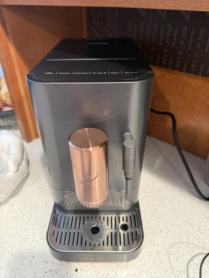 Café Affetto Automatic Espresso Machine + Frother Matte Black Make delicious Espresso, Americano, or dispense hot water with the Café Affetto Automatic Espresso Machine + Milk Frother. With a single press of a button and in less than 90 seconds, this automatic espresso machine dispenses your desired brew. Customize drink preferences by volume and strength, with a smart espresso machine that syncs with the SmartHQ app.