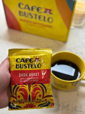 [This review was collected as part of a promotion.] If you love a good strong dark roast, Cade Bustelo’s dark roast is perfect for you. It’s smoky and complex with roasted notes. It don’t leave an aftertaste after drinking it. It looks like a dark roast and tastes delicious. I love the bright packaging!