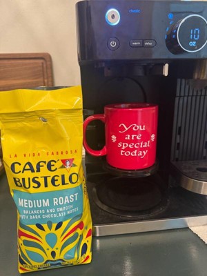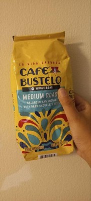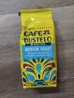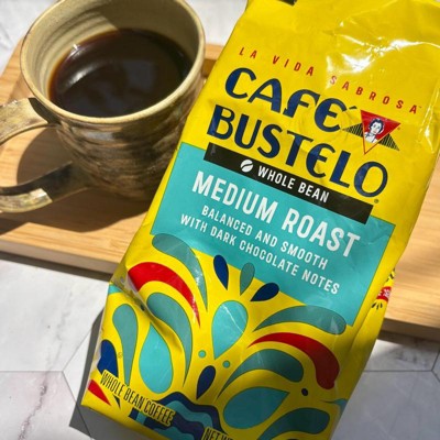 ¡Bienvenidos ! With nearly 100 years of experience serving the Latin community, Café Bustelo coffee embodies an iconic passion, energy and thirst for life. You can taste that infectious energy in our medium roast whole bean coffee, with its balanced and smooth flavor, medium body and dark chocolate notes. Es un sabor único . Every sip is a bold and delicious expression of lively Latin spirit — just brew a cup to taste what we mean. Start by grinding the coffee beans to your desired coarseness, then brew using any method you like: espresso machine, French press, cold brew, and more. You can count on a delightful experience whether you’re making it hot or cold. The pure, rich flavor of our medium roast coffee stands up to milk, sugar and ice for easy drinking with every cup. It’s only available at Target, so try it today — y vivir La Vida Sabrosa .