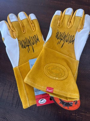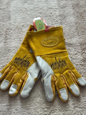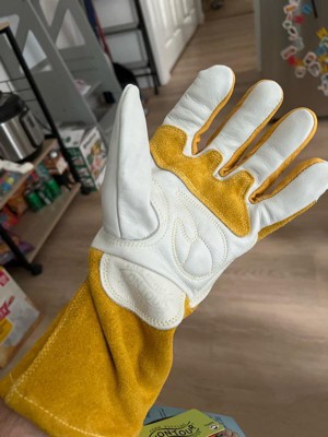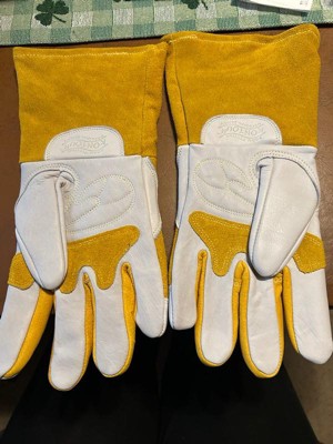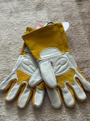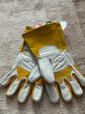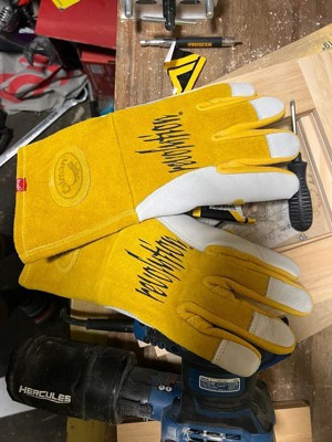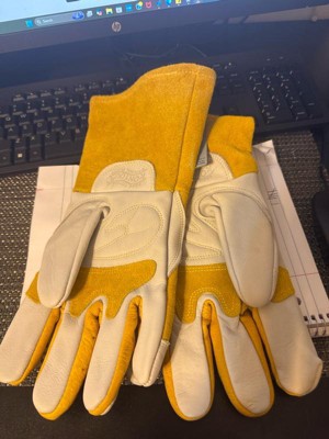 [This review was collected as part of a promotion.] I got these for my boyfriend, as he works in a job that requires a lot of physical labor of different types, including welding. I snapped this picture while he was building an awning in our backyard. He has since taken them to work, where he does a lot of spot welding, and he said they are well-made. They are not too stiff to be able to move freely while still being very protective and warm.