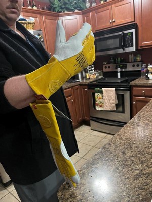 [This review was collected as part of a promotion.] I got these for my husband as he works with hot food and uses them quite frequently. They are comfortable but a little snug for an XL. They are very durable when being used and handle heat very well to protect the hands.