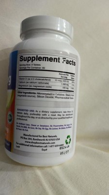 [This review was collected as part of a promotion.] I received the Best, natural cal- mag with vitamin D3 and it is 1500 mg per serving and this product is a combination of calcium and magnesium and the calcium is the mineral that helps with strong bones, teeth and muscle function. The magnesium is important for healthy activity and promotes essential nerve, muscle and heart function, the vitamin D3 is essential for calcium, transport and absorption into the body and vitamin D3 also contributes to help a healthy immune system and I have been trying these outs for about 3 weeks now and in a can you get 180 tablets or your take three tablets a day preferably with a meal. The reason why I rated it the way that I did is because if you take it without a meal, it is going to impact you. You might feel a little bit drowsy definitely will give you a stomach ache. So it is important to take it with the meal. The other reason why I rated it the way that I did is that you need to take a three of these daily to be able to get the full effect of it. I would have preferred. Just a one-time supplement daily but that's my opinion. I think it works great muscle and heart function. I was dealing with a lot of leg cramping and this has definitely helped with my muscles. I have noticed a a decrease in feeling overwhelmed and I think it has to do with the magnesium nerve muscle and heart function. So it says to keep this out of the reach of children and also keep in a cool dry place. It is made in the United States. The other thing that I really like about it is that it has all the information of the ingredients that are included in this product. So it has a vitamin B3. It has calcium. It has magnesium. It has a couple of other ingredients like microcrytaline, cellulos, stearic acid which is a vegetable source. Source it has silicon dioxide and pharmaceutical glaze which is typically used to hold everything in place together. Overall I have to say it's a good product.