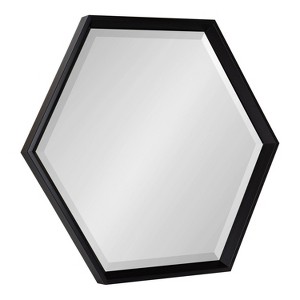 Go above and beyond the standard wall mirror with a mirror that utilizes clean, minimal geometry. The Calter wall mirror offers your home a bold accent piece that makes any space more dimensional and vibrant. It features a sophisticated yet simple design, with a sleek, hexagon shape that makes an instant impression, with a black finish that blends into any decorative aesthetic. Adding a mirror to your wall brings more light to your space, making it appear dimensional and spacious. The Calter wall mirror also has a sleek, beveled edge, which draws in even more light to make your space feel cozy yet bright. This mirror's overall dimensions are 22 inches wide by 1.5 inches deep by 26 inches tall, creating a dynamic and decorative focal point to wow everyone who enters your charming, modern home. It looks fantastic as a decorative accent or as a functional bathroom vanity mirror above your sink. It looks great in any living room, bedroom, entryway, or dining room as well. This hexagon wall mirror hangs vertically or horizontally in seconds with the convenient metal D-ring hangers attached to the back.
