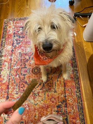 [This review was collected as part of a promotion.] I have a surprisingly picky Great Dane puppy and he loves this treat. I loved that they felt, looked, and smelled like real food! Not plastic tubes filled with byproducts. I will definitely be getting these again!!
