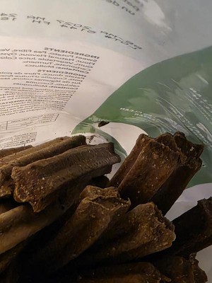 Been buying plaque busters for a while now cause they are great. However, last two packages were extremely disappointing. They had live maggots and flying adult bugs in them. Did not notice as the bugs flew out near the end of the package. Thinking it maybe they flew in some time during storage, ordered another package. This time found signs of bugs as soon as the package was opened. Checked and found live maggots and dead adult bugs. There were tons of casing and excrement at the bottom of the bag. You could see the feeding marks on the dental sticks. Love the product but afraid to purchase going forward. Quality control needs improvement.