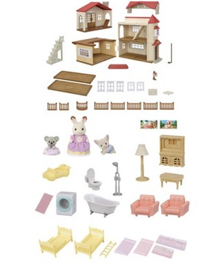Calico Critters Red Roof Country Home Gift Set, Dollhouse Playset with Figures, Furniture and Accessories