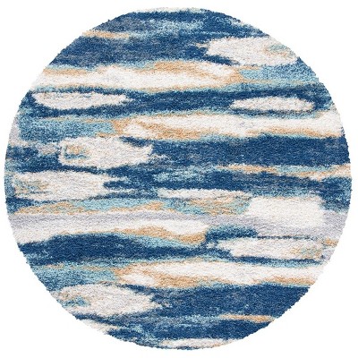Calico Shag CLC102 Loomed Indoor Area Rug - Blue/Ivory - 6'7"x6'7" Round - Safavieh