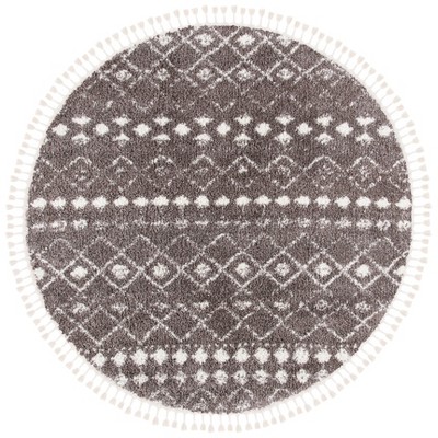 Calico Shag CLC116 Loomed Indoor Area Rug - Black/Taupe - 6'7"x6'7" Round - Safavieh