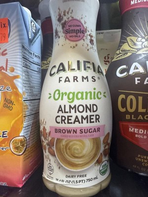 The first of its kind, Califia Farms Organic Brown Sugar Almond Creamer is a plant-based coffee creamer made with organic ingredients and without oils or gums. Creamy organic almond milk beautifully blends with the golden sweetness of organic brown sugar for a daily, dairy-free indulgence. Swirl into coffee–hot or iced–and make every cup irresistibly good.