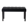 CorLiving California White Tufted Bench. Enjoy this entryway bench which offers plenty of extra seating space for your home. Featuring a padded foam surface finished with topstitching and stylish tufting. This multi-functional seat is easy to wipe clean with a damp cloth providing a practical solution for entryways, living rooms or bedrooms alike.
