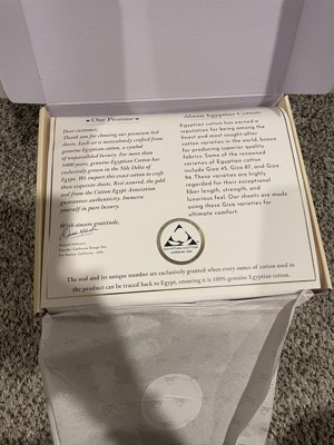 This is a very soft 100% Egyptian Cotton King Sheets set with Pillowcases. I loved how soft and silky the fabric felt. I really liked that the fitted sheet has a tag on it so you know where the head or foot of the sheet goes Super helpful