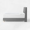 The Encino Fully Upholstered Bed from Threshold™ designed with Studio McGee is the perfect way to bring natural style to any bedroom in your home. Made with a pine wood and metal frame and featuring wooden legs, this bed has upholstered rails that match the wingback-design upholstered headboard for a cohesive and comfortable look. With a clean and simple style that pairs seamlessly with a variety of decors, this upholstered bed is the perfect way to make your sleep space a sanctuary.