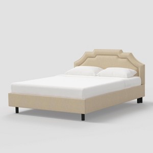- Upholstered notched platform bed, designed for use without a box spring