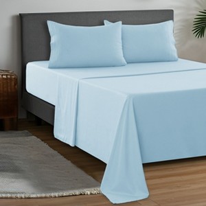 Product Name: California King Sheet Set 4 Piece Solid Color Bedding Sheets & Pillowcases - Light Blue