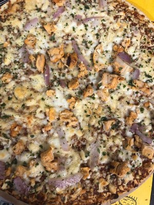 [This review was collected as part of a promotion.] It's hard to find a cauliflower pizza crust made in to a pizza and I have to say I loved the cauliflower crust taste of the pizza and barbecue taste with the chicken and cheese it and as I'm gluten free and so is this pizza it was perfect for me .went very well together,I wish though it had more chicken but otherwise I loved it