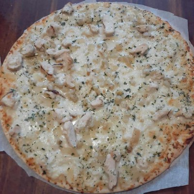 [This review was collected as part of a promotion.] The roasted garlic chicken pizza was yummy. I usually don't go for chicken topped pizza but I am glad I tried it. The grilled chicken,garlic and onions paired well on this mozzarella topped pizza with creamy garlic sauce. While the garlic sauce was good I would have liked this pizza to be sauced with pesto I think that would have made it amazing.