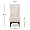 Establish your dining area in an atmosphere of outstanding grandeur with seating that is fit for royalty. Our dining chair brings absolute comfort and style to any table. Featuring a regal high back structure and elegant wingback design, this chair offers a classy and graceful aesthetic that highlights its stunning contemporary design. Finished with refined upholstery and attractive birch wood legs, this piece will instantly transform your dining space into an impressive masterpiece, making this the perfect set for any dinner party.