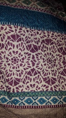 [This review was collected as part of a promotion.] I love the gorgeous color combination of purple, blue, turquoise and grey in this Joni Coverlet set design. Fabric is cotton and with great quality. Now, I just need to top this beautiful coverlet with this sham and two decorative pillows to complete a Bohemian inspired outcome.