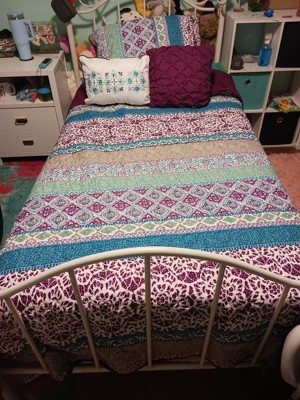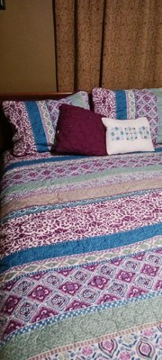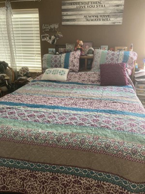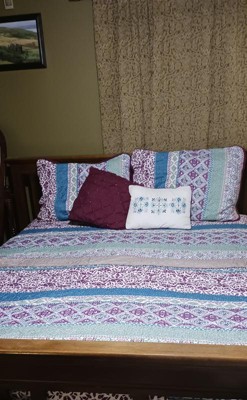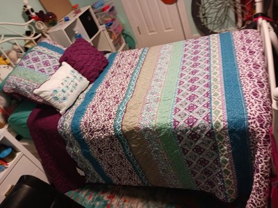 [This review was collected as part of a promotion.] I bought this Quilt set because I love the colors purple and teal. Once I put it on my bed. I really fell in love with it. Then my two daughters got on my bed and they melted in the softness and my oldest daughter told me she needed the same set. We are so happy with this Joni Reversible Quilt Set with Throw. We will buying another set for my oldest daughter for her birthday.