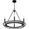 Calliope makes a bold industrial statement with its sculptural, geometric design. Matte black rings of different sizes encircle the round silhouette for a unique spiraling effect. Choose from a flush mount light with hammered etched glass or a candle-style chandelier with both matte black and nickel candle sleeves included, allowing you to customize to your setting.