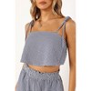 The Callum Short Set in Navy Gingham is a stylish two-piece outfit that will elevate your summer wardrobe. This set includes a cropped length top with a square neckline and thin tie close straps, as well as high waisted shorts with a shirred elasticized waist band for the perfect fit.