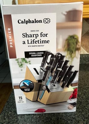 Calphalon 15pc Stainless Steel Cutlery Set: Forged Blades, Knife Block, Hand Wash, Lifetime Warranty