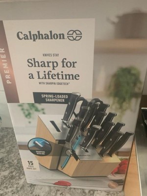 [This review was collected as part of a promotion.] I am so happy I received these knives. I love that they sharpen themselves when out in the block. It means I always have a sharpened knife. Calphalon is a great name so I know this will be the last set of knives I have to buy. I t also contains a nice assortment of knives so I have what I need for all my prep needs! Definitely a must buy.