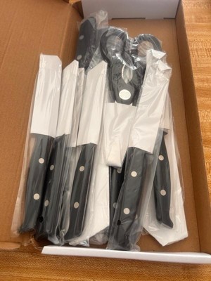 [This review was collected as part of a promotion.] Thank you Influencer, These knives are awesome. The set includes 8 steak knives, paring, utility, chef, bread, santoku, and scissors. The knife block has a built in knife sharpener which sharpens the knife every time. The knives have a durable handle and easy to hold. I used the chef knife to cut a watermelon and it was a breeze.