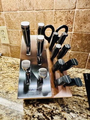 [This review was collected as part of a promotion.] I cannot say enough great things about this knife set I had the privilege of receiving and reviewing! This is not only an esthetically pleasing, but it is durable, beautiful design and safe block inserts. The design versatile due to it’s design/knife inserts. I would highly recommend this knife block set.