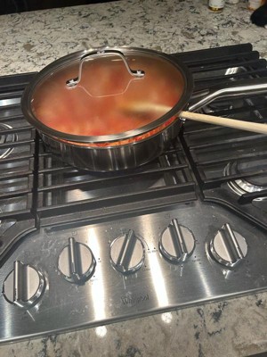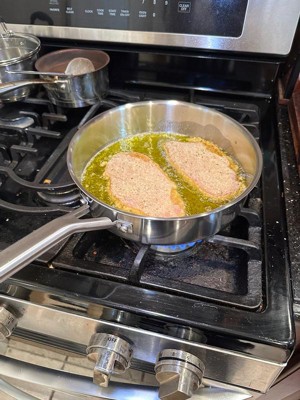[This review was collected as part of a promotion.] This is an excellent sauté pan. The stainless steel is very high-quality and the pan is nice and sturdy. I also like how comfortable the handle is to hold. I noticed that it heated up very quickly and evenly and made it easy to cook soups and stews. I also tried cooking with it in the oven and it worked pretty nicely.