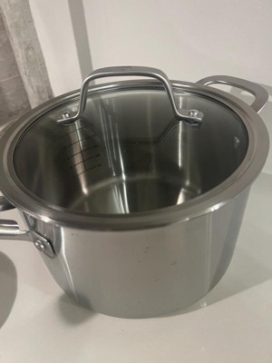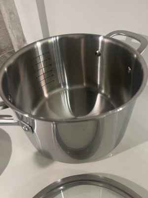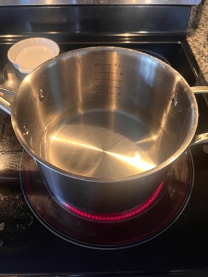 [This review was collected as part of a promotion.] AMAZING POT. this is our everything pot. from small batches of pasta to large soups/stew we will use this pot. it’s not scratched yet so far. it’s gorgeous stainless steel appearance looks sleek on the stove. it heats up it an okay time .. just depends on how much liquid is in the pot. came in. a neatly packaged box that protected the pot well!