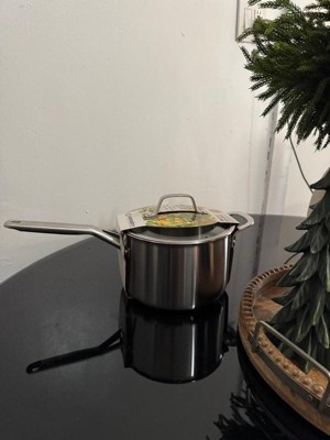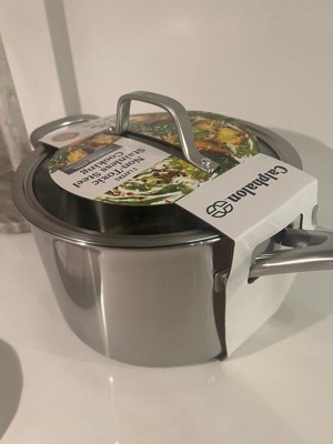 Elevate your kitchen with the Calphalon Stainless Steel 4.5-Quart Sauce Pan with Lid, crafted for precision cooking and long-lasting durability. Engineered with non-toxic, 3-layer construction and a heat-responsive aluminum core, this pan features Calphalon Turbo Temp technology and heats up to 30% faster, so you can getting cooking faster.* Whether you're whipping up delicate sauces or creating a delicious soup to impress your guests, this sauce pan delivers flawless results every time. The sleek stainless steel finish adds a professional touch to your cookware collection, while its oven-safe, all-around compatibility ensures seamless cooking on any stovetop. Experience effortless cooking and crowd-pleasing perfection with Calphalon Stainless Steel cookware. (*Calphalon Stainless Steel vs. Cuisinart Professional Series Stainless Steel)