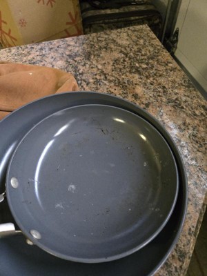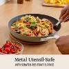 Its durable ceramic nonstick coating lets you cook without added oil or butter, for a healthier way to make your favorite foods, and is made without PFAS. Interiors are scratch resistant and metal-utensil safe. Stainless steel handles stay cool on the stovetop; while frying pans are oven safe up to 450 degrees F for stovetop-to-oven versatility. Sturdy ceramic-coated aluminum construction provides fast, even heating for consistent cooking results.