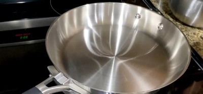 - Three layers of metal quickly and evenly distribute heat; Stainless steel handles stay cool while cooking on the stovetop