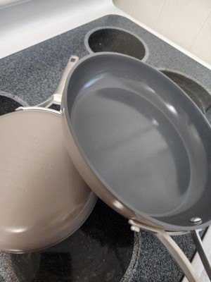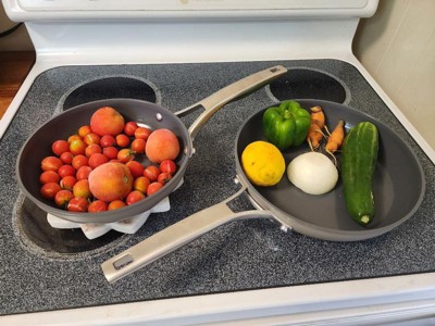 [This review was collected as part of a promotion.] I tried the Calphalon Premier Ceramic 2 piece fry pan set (8” and 10”) in Mushroom. They were Devine to cook with on my gas stove. Nothing stuck and everything slid right off the surface. They are so easy to clean too.