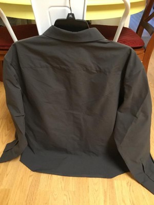 [This review was collected as part of a promotion.] I am all about this very innovative shirt! You can literally wear it to the office, to a game, or out for a round of golf. It’s very versatile and super comfortable next to the skin. I really like the dark color which is called asphalt. It has snap closures all the way down the front rather than buttons, which I also like. I guess my favorite thing about it is the large hidden pocket on the front. It is hidden by a small hardly noticeable zipper. You can wear this open over a t-shirt for an entirely different look — almost like a jacket. You can machine wash and dry — just turn it inside out — a big plus! I highly recommend — 5 stars