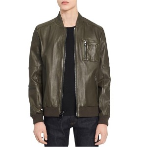 Calvin Klein Mens Genuine Leather Bomber Jacket
