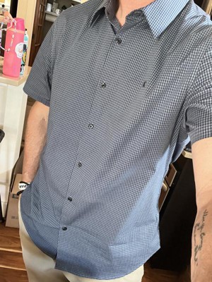 [This review was collected as part of a promotion.] Sharp looking and comfortable Calvin Klein short sleeve micro check stretch shirt fits really well for a body slim fit medium size. The material is very light weight and very modern looking pattern. This short sleeve looks great resting very well in your shoulder, showing your chest and very comfy for the midsection due to stretching materials. It is very stylish and professional when you stuck your shirt inside the pants. It does go well with jeans and dress pants. Highly recommended!