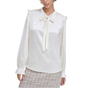 Calvin Klein Womens Textured Satin Tie Neck Ruffled Pullover Blouse - 1 of 1