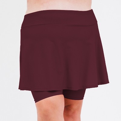 Calypsa Women's Flared Mid-Thigh Swim Skirt With Bike Shorts - Red, Medium
