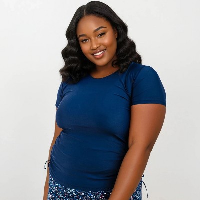 Calypsa Women's Plus Size Half-Zip Short Sleeve Rashguard UPF 50+ Adele Swim Top