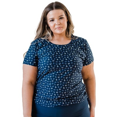 Calypsa Women's Loose Fit 3/4 Sleeve Rash Guard UPF 50+ Margaux Swim Top - Wild Navy/Navy, 3X