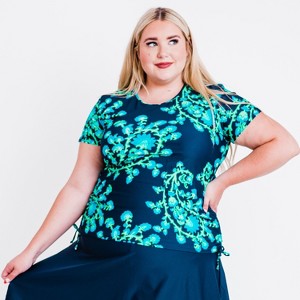 Calypsa Women's Plus Size UPF 50+ Short Sleeve Adele Swim Top - 1 of 4