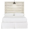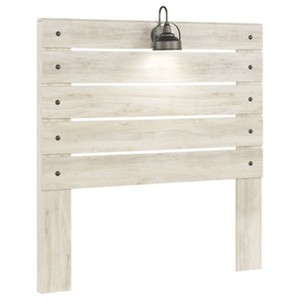 What a delightful take on rustic industrial style. Whether modern loft or modern farmhouse, this full panel headboard makes itself at home. The wispy whitewash palette enhances without covering the grain for that weathered look you crave. Love to read in bed? You’re sure to find the retro-chic light sconces and USB plug-ins on the open-slat style headboard such a bright idea. Signature Design by Ashley is a registered trademark of Ashley Furniture Industries, Inc.