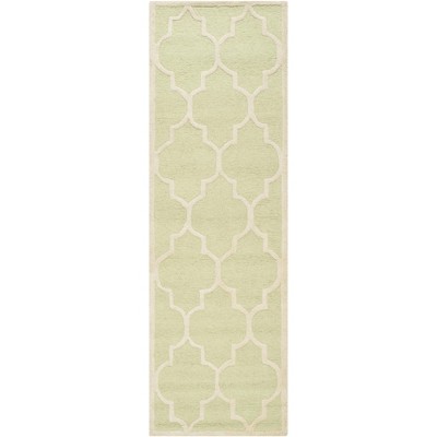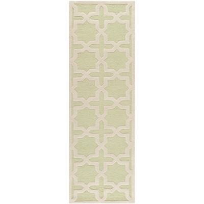 Our wool runner is not only elegant but also durable, ideal for high-traffic areas in your home. The charming pattern, inspired by the geometric trellis designs, invokes a sense of visual harmony and adds an element of contemporary design to your space. The ivory outlines create a striking contrast against the light green, making this pattern both versatile and captivating.